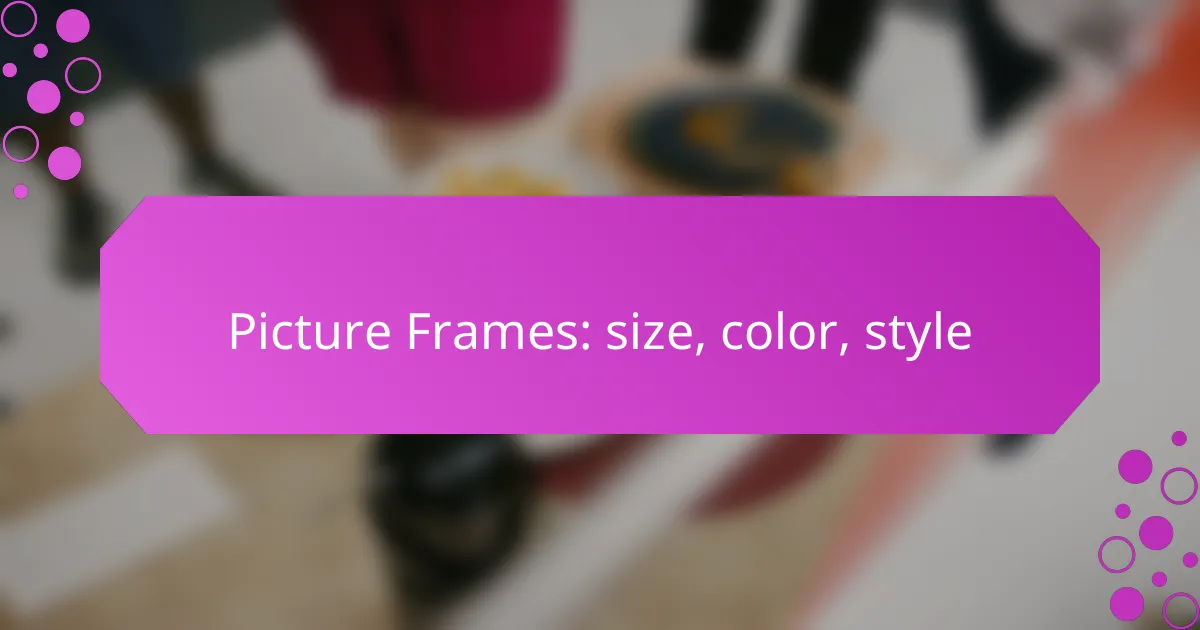 When selecting picture frames, it’s important to consider size, color, and style to best showcase your artwork. Standard sizes like A4, A3, and A2 are commonly used, but custom options are available for unique pieces. The color of the frame should complement both the artwork and the room’s decor, while various styles—ranging from classic wooden to modern metal—can enhance the overall presentation.